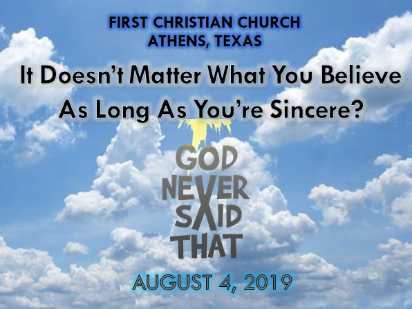 Answer to Objection 2 To Christianity. IT DOESNT MATTER WHAT YOU BELIEVE AS LONG AS YOU ARE SINCERE - Last message in four part series God Never Said That - A teaching on other religions. In this lesson we shall answer the question Does it matter what you believe I.