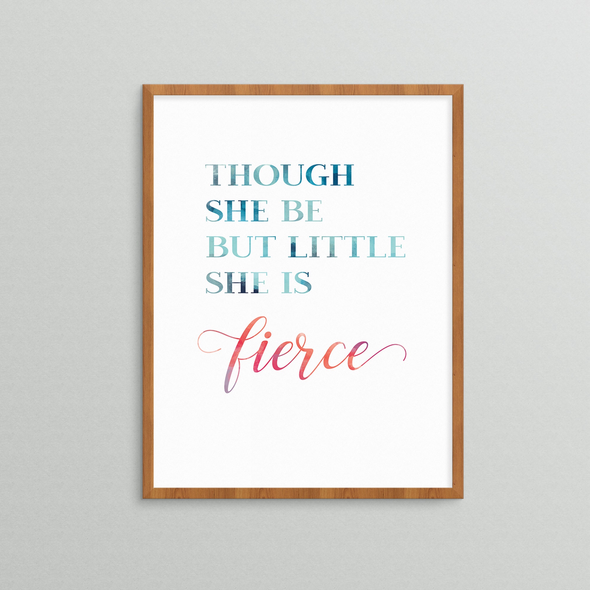 Shakespeare And Though She May Be Little She Is Fierce With. Though she be but little she is fierce is a quote from Shakespeares A Midsummer Nights Dream spoken by Helena in act 3 scene 2 referring to her friend Hermia.